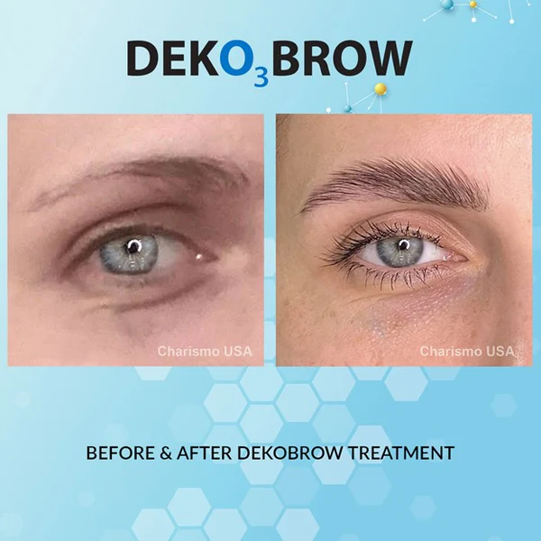 Seeing is believing and you will love what you see as you confidently reveal your ideal eyebrows! Award-winning DEKOBROW™, is a safe, natural,3-in-1, hypoallergenic, activating gel treatment. It works to thicken eyebrow hair and prompt new, healthier strands in the areas that are sparse.