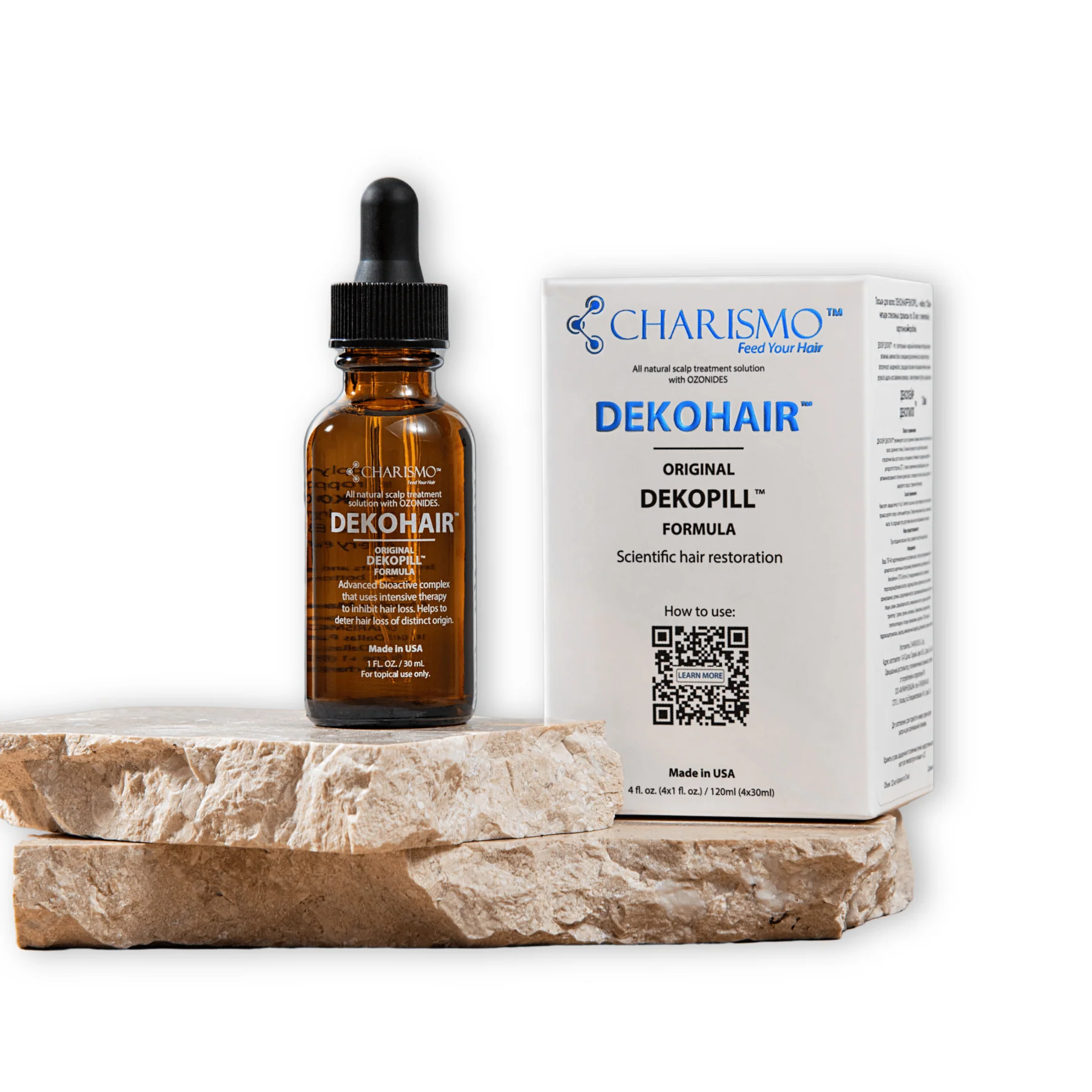 DEKOHAIR™ — це сироватка, розроблена для підтримки шкіри голови та відновлення зовнішнього вигляду зон із порідінням волосся. Флакон об’ємом 60 мл розрахований приблизно на 30 днів використання.